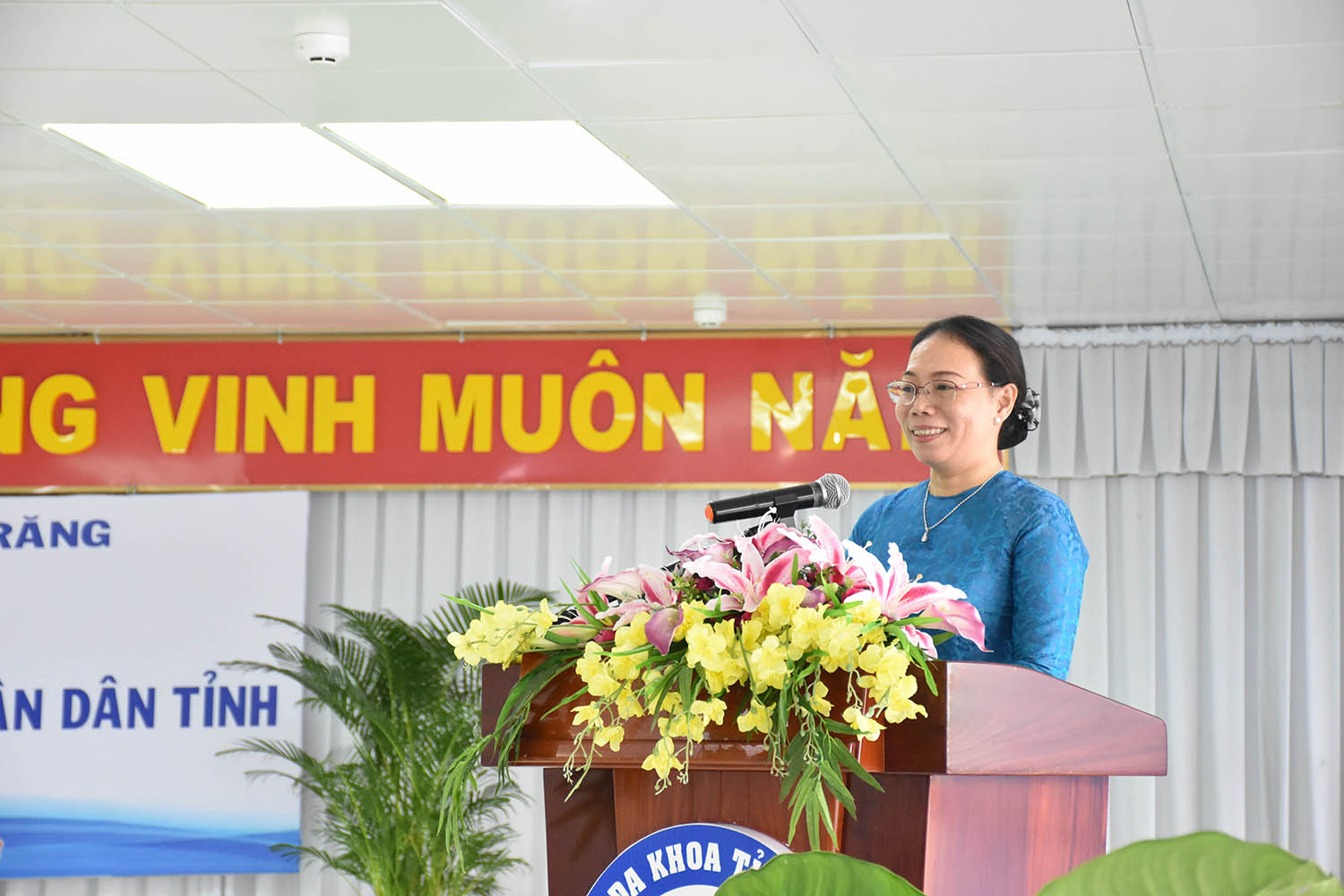 Đồng chí Huỳnh Thị Diễm Ngọc – Tỉnh Ủy viên – Phó Chủ tịch UBND tỉnh gửi lời chúc mừng TS.BS. Trương Tú Trạch; Cho rằng TS.BS. Trương Tú Trạch có tín nhiệm cao của lãnh đạo tỉnh, tập thể Bệnh viện. Tin tưởng với chuyên môn, đạo đức nghề nghiệp, TS.BS. Trương Tú Trạch sẽ hoàn thành thành tốt nhiệm vụ trong vai trò mới. Qua đó, góp phần cùng tập thể Bệnh viện Đa khoa tỉnh có những bước tiến vượt bậc, giữ vững chất lượng, thương hiệu là nơi chăm sóc sức khỏe nhân dân tốt nhất của nhân dân trong và ngoài tỉnh Sóc Trăng.