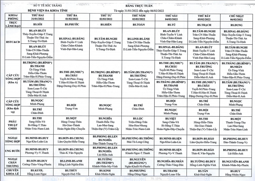 LỊCH TRỰC TUẦN TỪ NGÀY 31/01/2022 ĐẾN NGÀY 06/02/2022