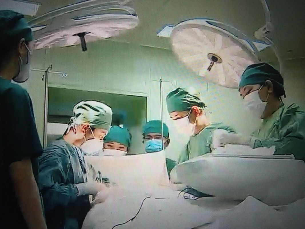 Bác sĩ thực hiện phẩu thuật cắt thùy trái giáp cho bệnh nhân