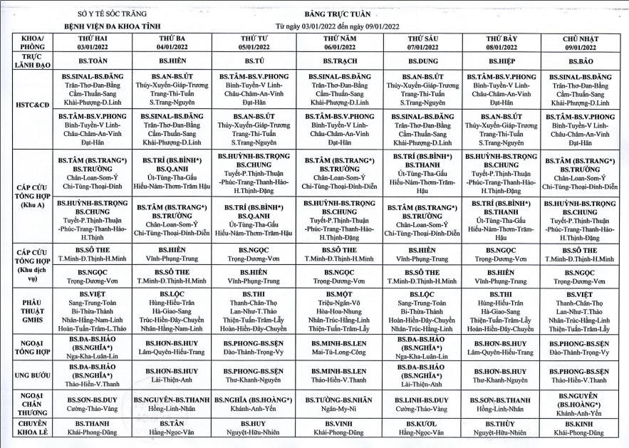 LỊCH TRỰC TUẦN TỪ NGÀY 03/11/2025 ĐẾN HẾT NGÀY 09/11/2025