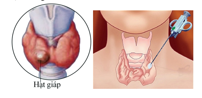 Lúc ban đầu rất im lìm. Bác sĩ rà siêu âm vùng cổ thấy một hột nhỏ khoảng vài mm trong tuyến giáp. Dùng kim thật nhỏ chích hút tế bào biết được lành ác.
